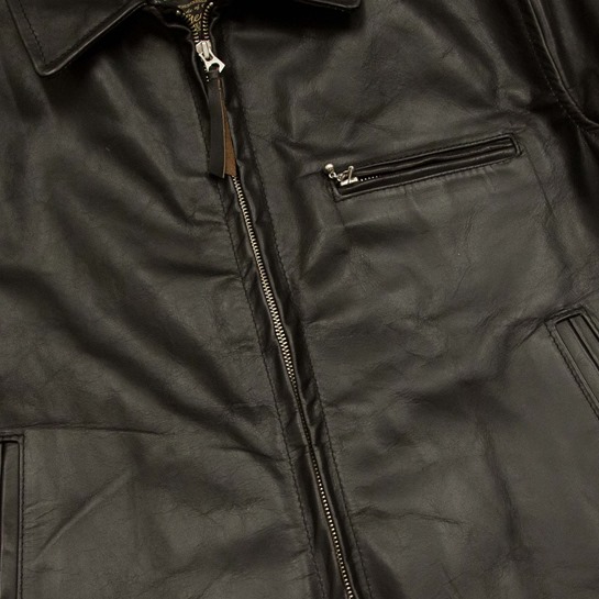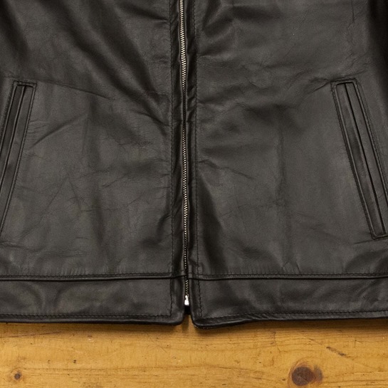 A jacket made by an apprentice at the begining of their training with quite a few imperfections. The jacket was made with a batch of CXHH that has brown tones showing through. The front zip has some roping and there is poor stitching throughout the jacket as well as stitch holes on the jackets interior. The front hem is asymmetrical with a slight step as well as the sleeve lengths differing. There are also some pleats on the lining at hem and neck- see pictures (Priced accordingly)