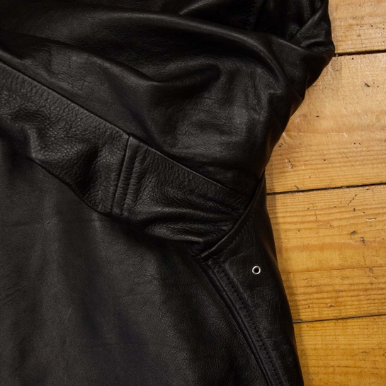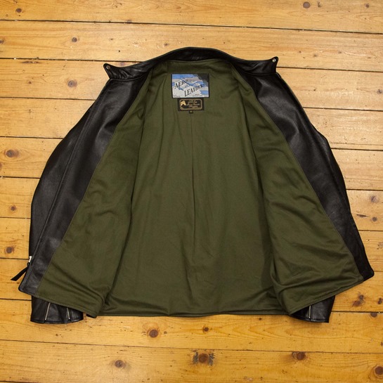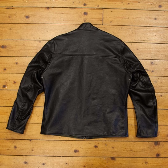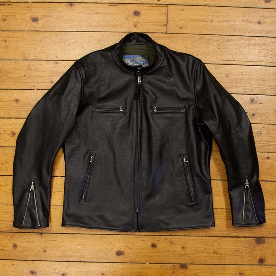 A nice Board Racer jacket with some variation in terms of grain and a few natural marks as to be expected with a blue label. There is also some puckering at the armpits although not too noticable when wearing (Priced accordingly)