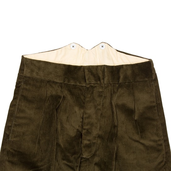These superb traditional "Utility" corduroy trousers are loose cut and are made in The UK, they are stitch for stitch replicas of an original pair of 1940s CC41 labelled corduroy trousers recently acquired on eBay. Utility clothing had a special label to denote that it was an approved design. The