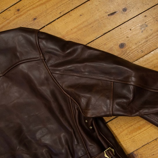 A well constructed 1930s Half Belt although the leather colour is slightly mismatched throughout with the right sleeve lightening up during construction. This will become less noticable with wear. (Priced accordingly)