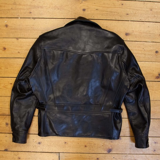 A nice Moonshiner jacket made for stock, there are some small scratches at the button hole which will be less noticable with wear. (Priced accordingly)