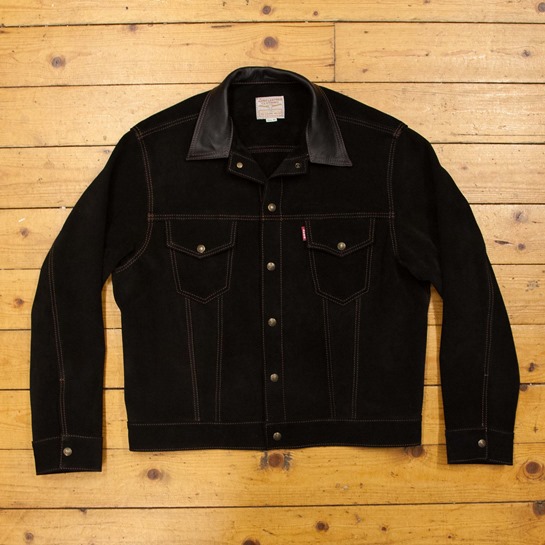 A nice example of an Unlined Type III Jean Jacket made in Black Suede for stock.