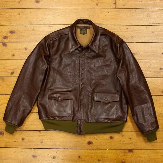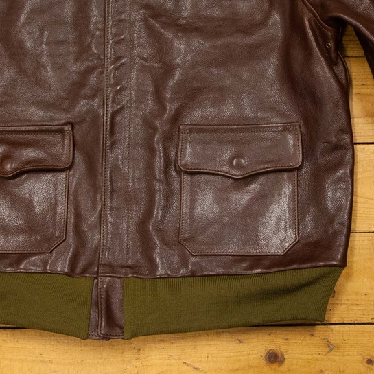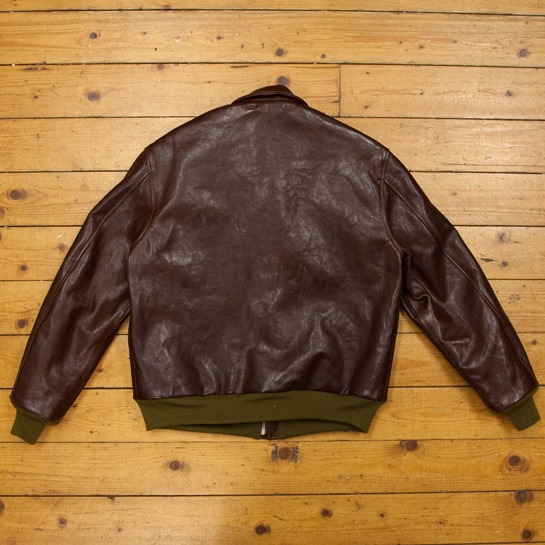 A good A-2 Bronco in a lovely batch of Tobacco Badalassi leather. The pocket flaps are a little wider than the pocket bags and the knit is slightly shorter than usual at the back- see pictures (Priced accordingly)